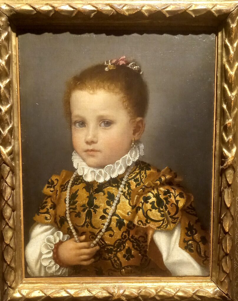 La bambina non abbassa lo sguardo, i suoi grandi occhi azzurri si fissano sull’osservatore, a dimostrazione di un carattere forte e poco remissivo. Era questa la principale caratteristica del Moroni: saper cogliere il carattere e l’anima dei suoi modelli, e saperla poi trasferire sulla tela.