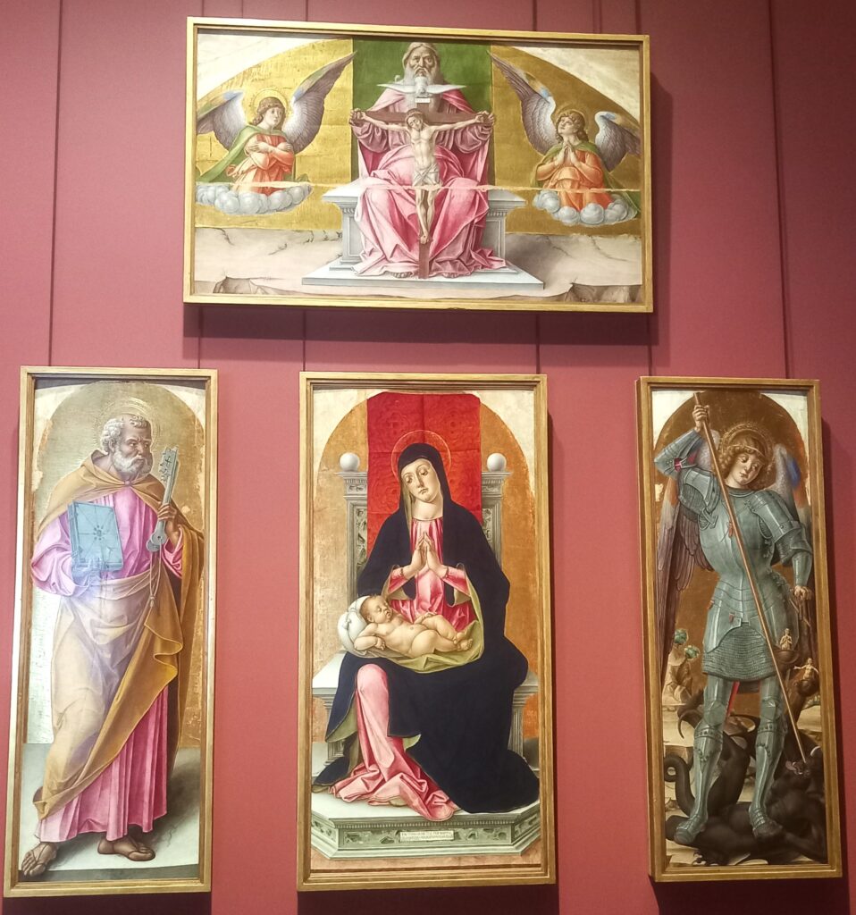 Il percorso espositivo è organizzato in sezioni che raccontano tempi diversi dell’arte. Mi sono adeguata e ho diviso in tre parti la descrizione delle opere della Pinacoteca.