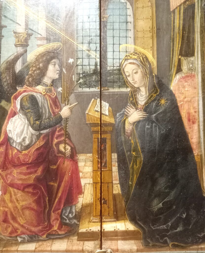 L’opera è un esemplare raro di altarolo portatile, conservato nella sua cornice originale. Composto da due ante che, tramite un gancio, si aprono e si chiudono, un tempo proteggeva un’altra immagine sacra, ora perduta. All’esterno, le due ante sono dipinte con l’Annunciazione; all’interno con san Benedetto e santa Scolastica.