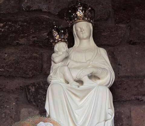 Nella nicchia centrale è custodito la statua marmorea della Vergine col Bambino, entrambi con indosso una corona aurea.