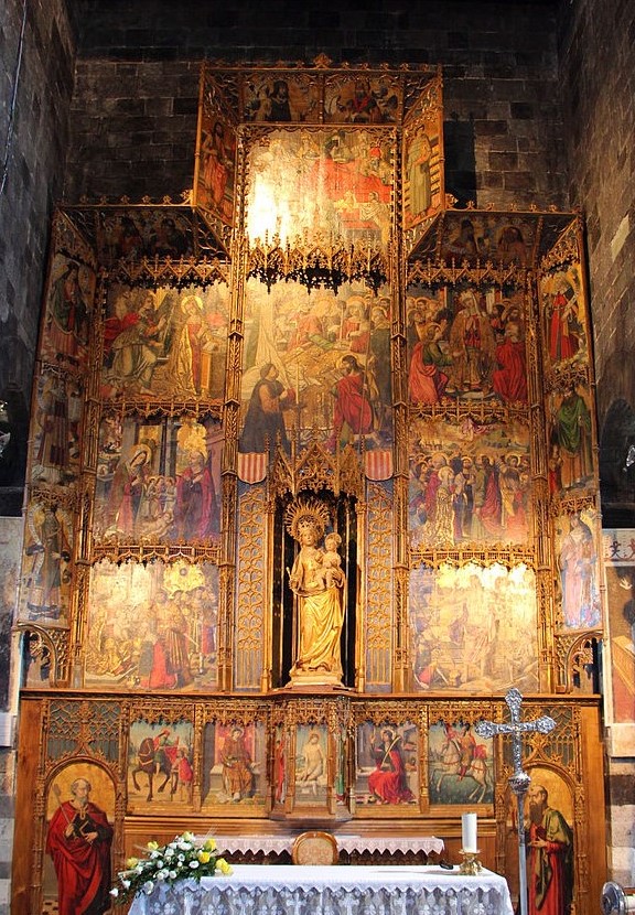 Nell’abside semicircolare si trova l’imponente retablo Maggiore, il più grande polittico del ‘500 in Sardegna. L’opera, alta circa dieci metri e larga sei, si compone di trentuno tavole dipinte, separate da intagli di legno dorato. Le tavole rappresentano profeti e santi, oltre alle vicende della vita di Maria. Al centro del retablo è la statua lignea di Nostra Signora del Regno, in cui la Madonna, che tiene in braccio il bambin Gesù, è rivestita di insegne regali (corona e scettro).