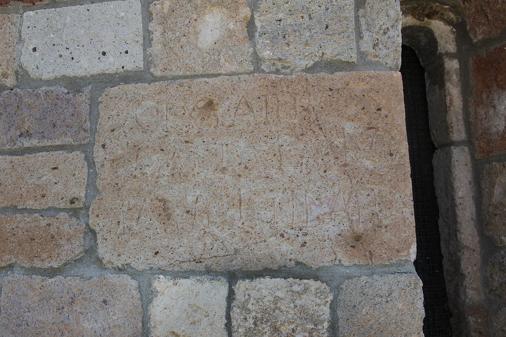 Di notevole importanza appare un’epigrafe, del XV secolo, su un concio lungo il paramento esterno dell’abside, che sembra rappresentare la prima attestazione scritta in lingua còrsa in Sardegna, a testimonianza della presenza dei còrsi nelle regioni storiche dell’Anglona e della Gallura. Il testo dell’epigrafe, «operaiu malu e fora l’erimita», è oggetto di dibattito, anche se la spiegazione più comune è quella che vede un’imprecisata critica all’opera di amministrazione della chiesa e del suo custode (eremitanu in sardo).