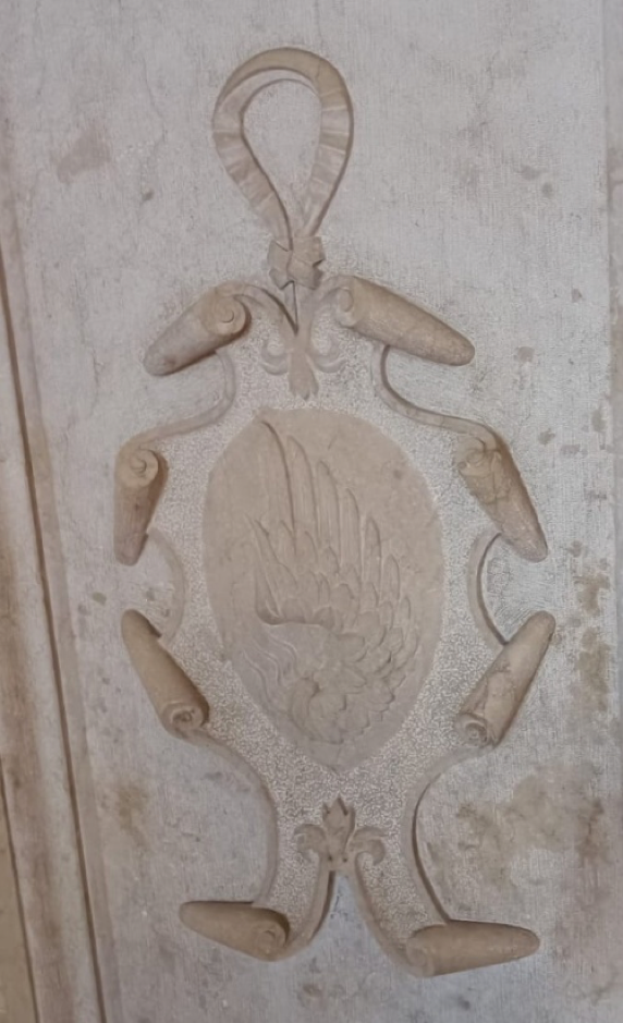 Anche se vi sono sepolti un paio di discendenti di molte generazioni dopo Dante, è comunque emozionante trovare qui lo stemma della famiglia, che riproduce un’ala.