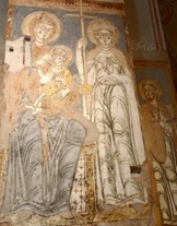 Sui pilastri della navata centrale vi sono alcuni affreschi di carattere votivo.