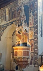 Il pulpito si trova nel cuore della navata maggiore, spesso addossato a un pilastro; l’oratoria che vi si svolge, non è necessariamente collegata all’azione liturgica (si parla dei tempi dei grandi predicatori, che si spostavano da una chiesa all’altra; pensate a fra Cristoforo), l’arricchisce e magari la interpreta, ma non ne è parte.