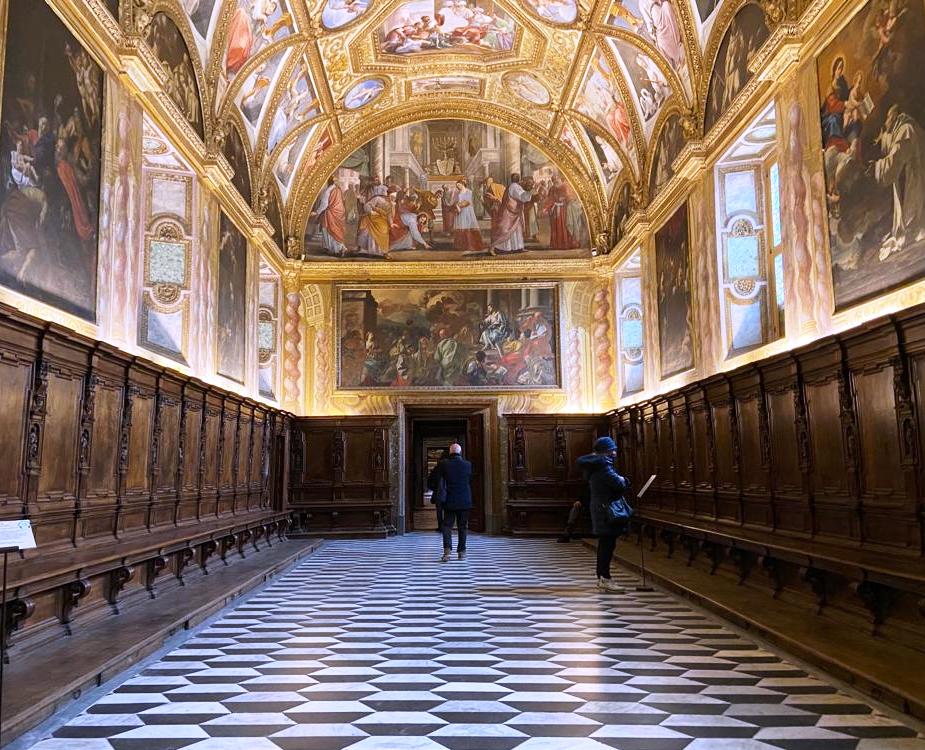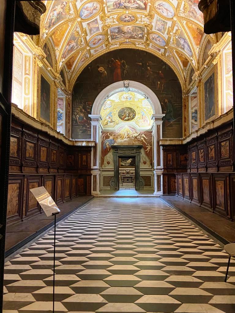 Il quarto del Priore è l’appartamento della massima autorità del convento; composto da ambienti di rappresentanza e stanze private, lo studiolo, l’oratorio, la biblioteca, e arricchito da logge, vi venivano accolti principi, re e ospiti illustri.