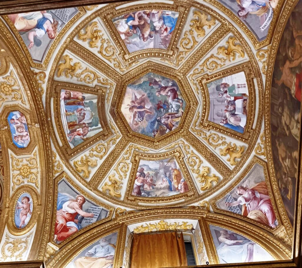 La volta è affrescata da Luca Giordano (e, anche questo, potevo perdermelo? è uno dei miei pittori del cuore!), con lo straordinario Trionfo di Giuditta. Luce e gaiezza.