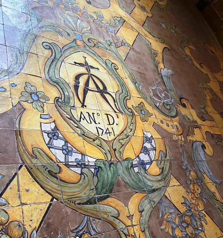 Nel vestibolo si conserva ancora la pavimentazione originaria maiolicata realizzata dalla fabbrica di Giuseppe Massa (lo stesso delle maioliche del chiostro di Santa Chiara).