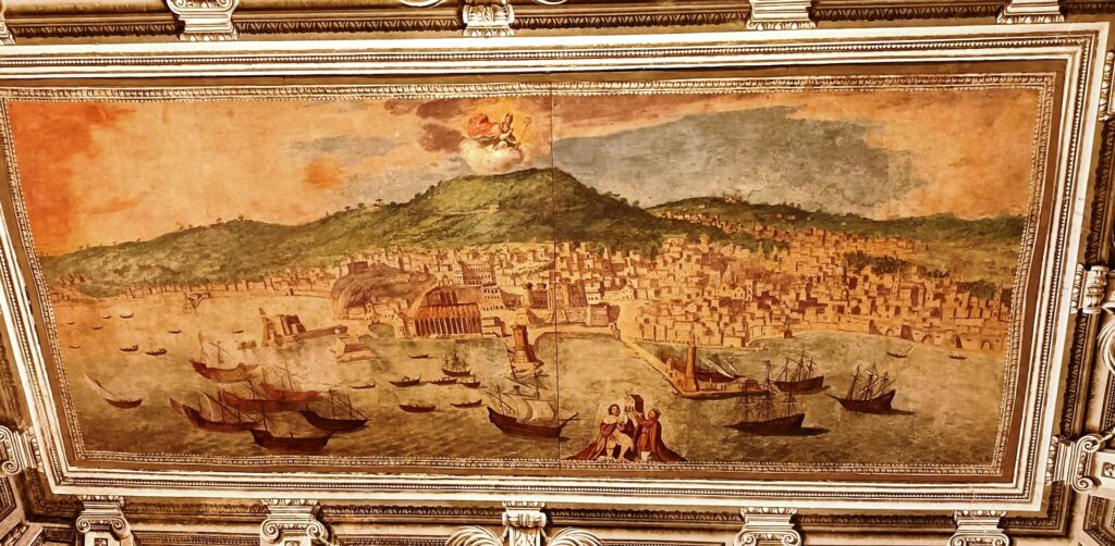 Veduta di Napoli, sul soffitto della biblioteca del Quarto del Priore (in mancanza della Tavola Strozzi, accontentiamoci di questa)