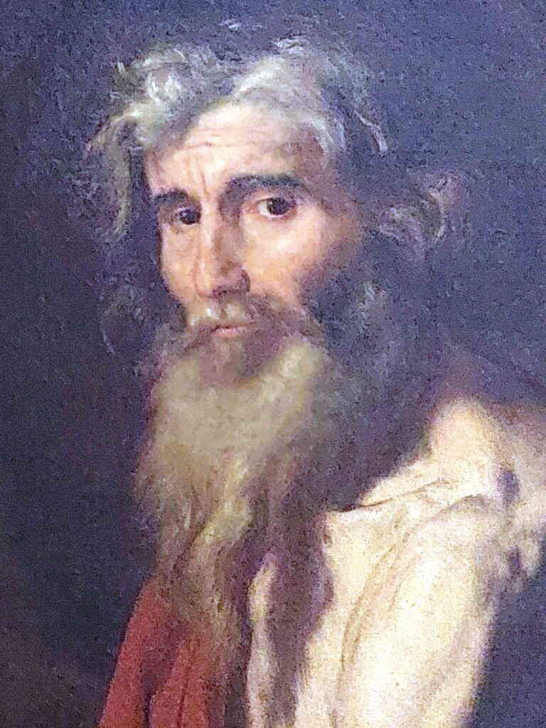 Mi viene in mente quello di Caravaggio alla Borghese, così anziano, pensoso… ma il rosso di quel manto!