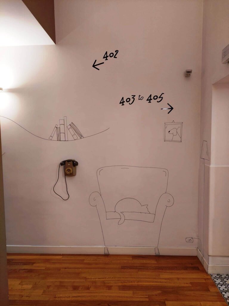 È la Betta, un paio di giorni dopo, a scoprire il gatto disegnato sulla parete del corridoio, col quadretto del cane. La Cri e io manco ce ne eravamo accorte.