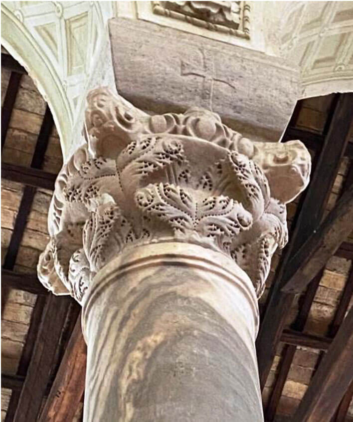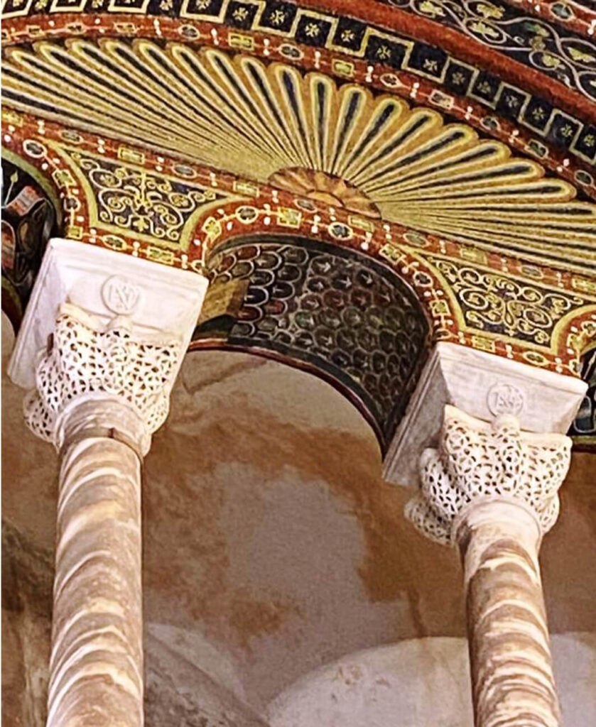 Tanto le colonne che i capitelli giunsero a Ravenna dalle cave in Asia Minore già lavorati e decorati, come dovette essere pratica abituale nel VI secolo1 .