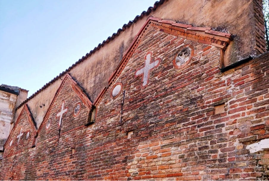 Sta in una cappella, in un piccolo angolo di pace della Ravenna medievale. Costruita a fine ‘700, la “zucarira” (la zuccheriera in dialetto locale) – così soprannominata dai ravennati – è sul fondo di Via Dante Alighieri, nella cosiddetta Zona del Silenzio. La cappella e il suo interno non sono niente di che (tranne il bassorilievo di Pietro Lombardo di fine ‘400), ma ci si emoziona lo stesso.