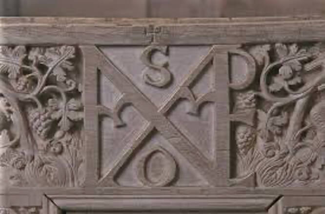 Sulla fronte della cattedra c’è il monogramma di Massimiano.