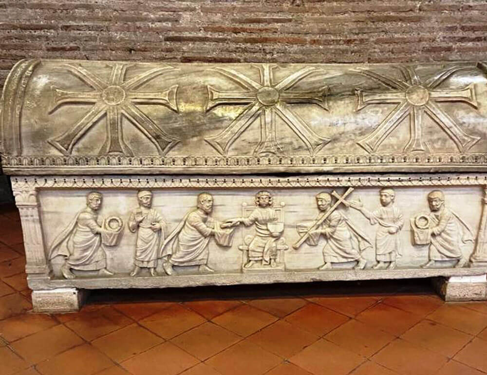 Il piccolo sarcofago delle Ossa Neonis l’abbiamo visto ieri, davanti alla finestrella della cripta di San Francesco. Tutto torna, qui, tout se tient.