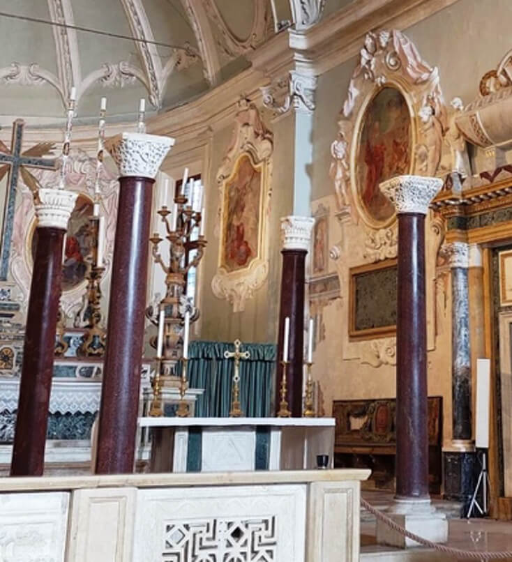 Poi la Fiorenza fa: “Ma guarda: il colore del vestito è lo stesso delle colonne che stanno sotto!”. All’altare ci sono quattro colonne in porfido del ciborio originario.