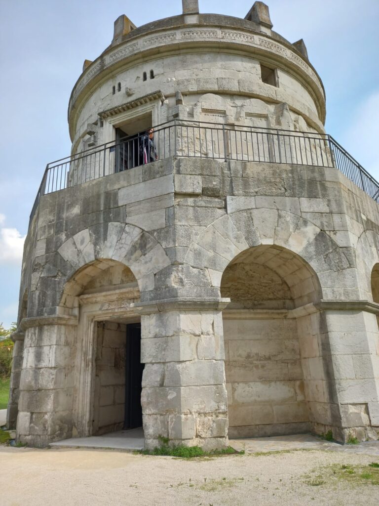 Colpisce sempre la sua maestosità. Re Teodorico lo fece costruire come propria sepoltura attorno al 520 ed è molto simile, nell’architettura, ai mausolei romani, pur con qualche influenza orientale. L’unico elemento goto è il fregio “a tenaglia” che corre alla base della cupola.