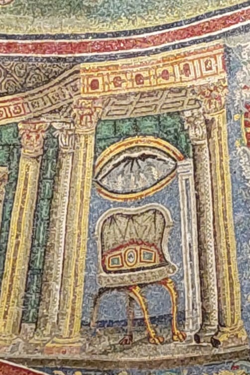 Ci concentriamo sulla Cattedra di Massimiano, il seggio da cui egli presiedeva alle cerimonie (sempre lui, sì, Massimiano, quello del mosaico di San Vitale, il primo arcivescovo, quello che ha consacrato S. Apollinare in Classe e S. Vitale ecc.)