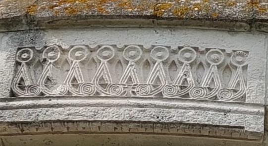 Accanto c’è il campanile cilindrico. Le dimensioni delle sue aperture aumenta man mano che si sale verso l’alto, sia per alleggerire il peso della struttura, sia per offrire meno resistenza ai venti.