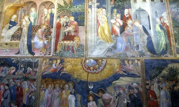 Completamente affrescato da Lorenzo e Jacopo Salimbeni (fratelli di San Severino Marche) ai primi del ‘400, è un capo d’opera dello stile gotico internazionale.