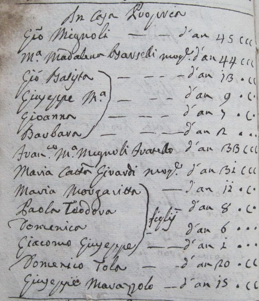Tuttavia, la famiglia Mignoli è, in quell’anno 1772, molto numerosa.