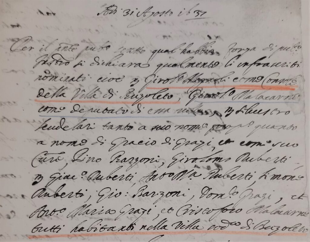 • Due anni dopo, nel dicembre 1626, egli vende ai fratelli Buzzi due pertiche di una sua pezza di terra, sita in Buzzoletto presso il Dugale, per poco più di 630 lire.