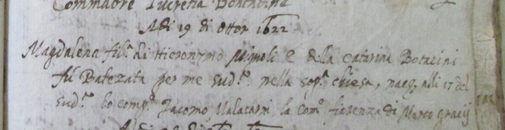 17 ottobre 1622. Battesimo di Maddalena di Girolamo e Catarina Bottacini (Buzzoletto, Archivio parrocchiale)